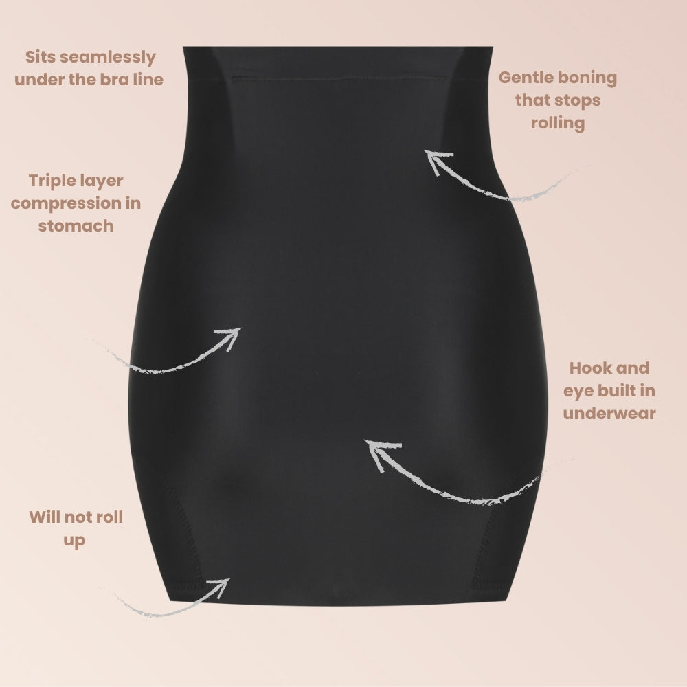 Comfortable, supportive, breathable, creates hour glass figure, the perfect every day comfort wear that smooths and defines you body for your favourite dress or skirt. Designed for the woman under 5"5 in height or for women who like shorter styles.